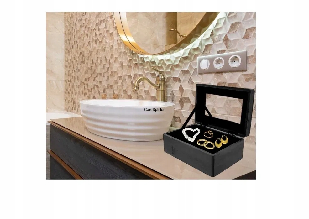 Będzie się pięknie prezentować zarówno otwarta z wyeksponowaną biżuterią jak i zamknięta dzięki eleganckiemu minimalistycznemu wykończeniu .