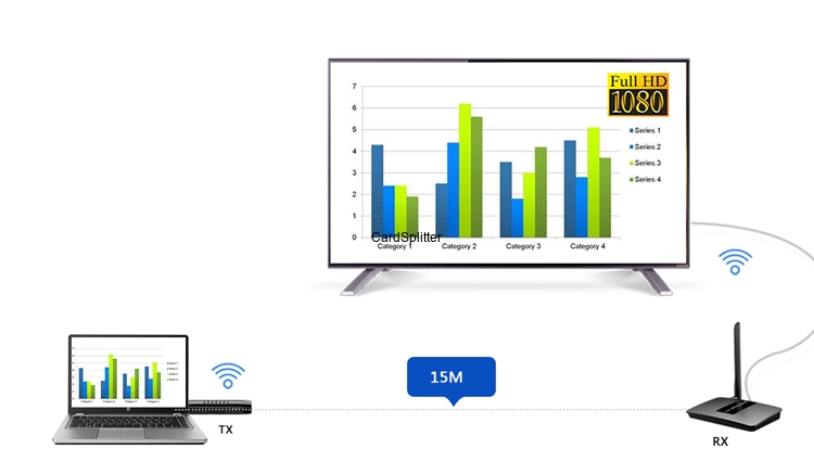 7. Nadajnik zasilany poprzez port HDMI (gdy transmisja / połączenie nie jest stabilne lub wyjście nie jest płynne, podłącz kabel Micro USB do portu DC5V w celu zasilania)