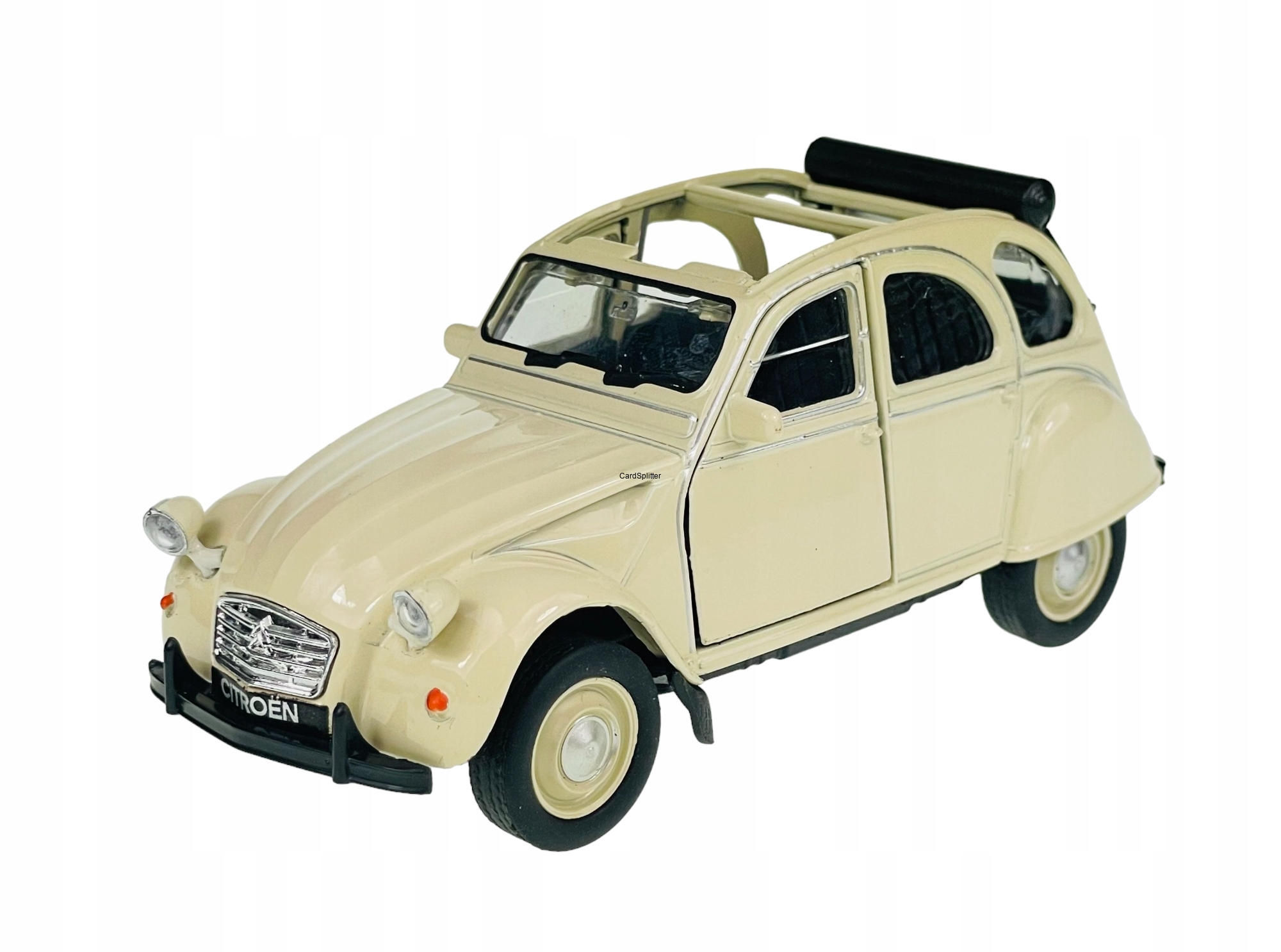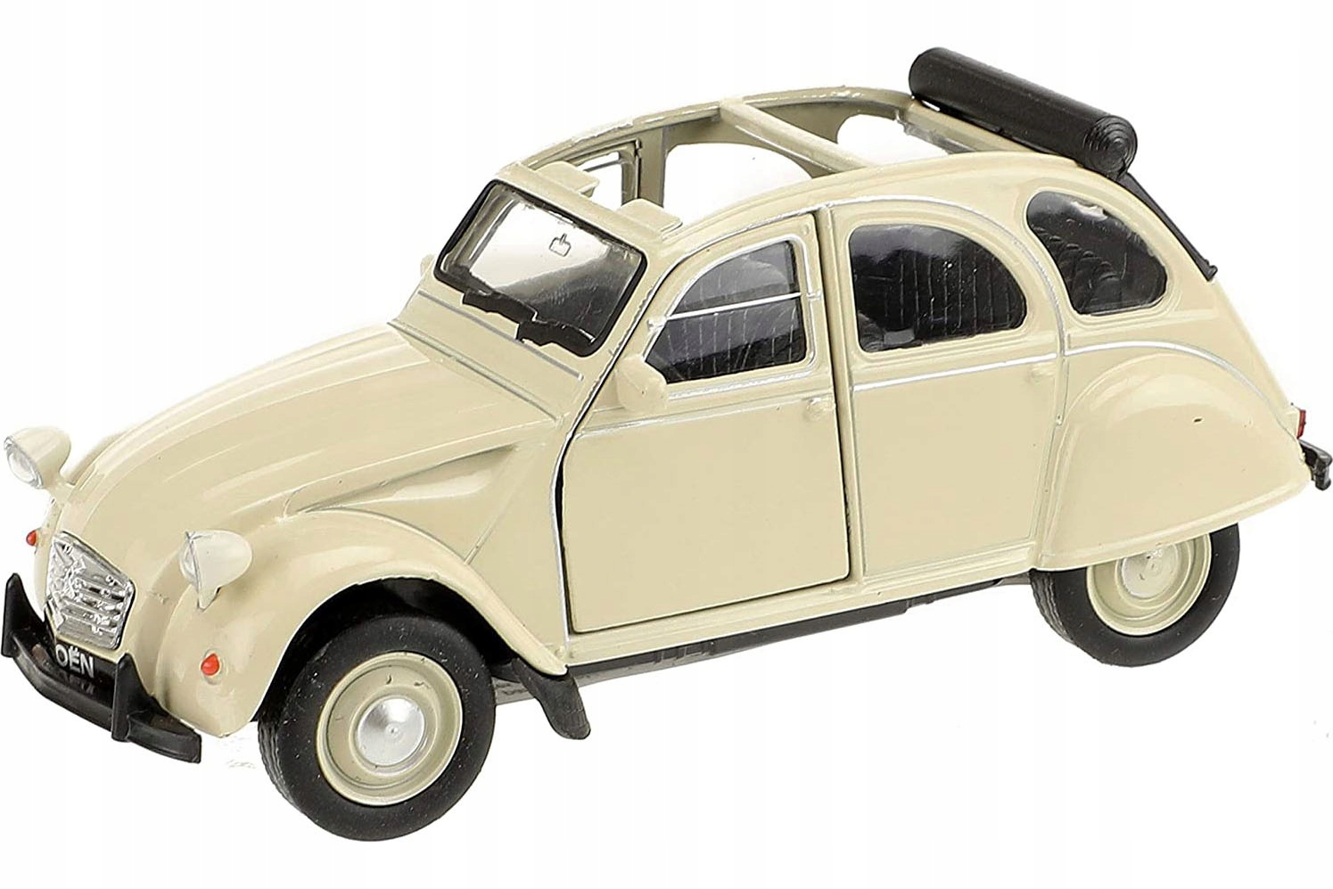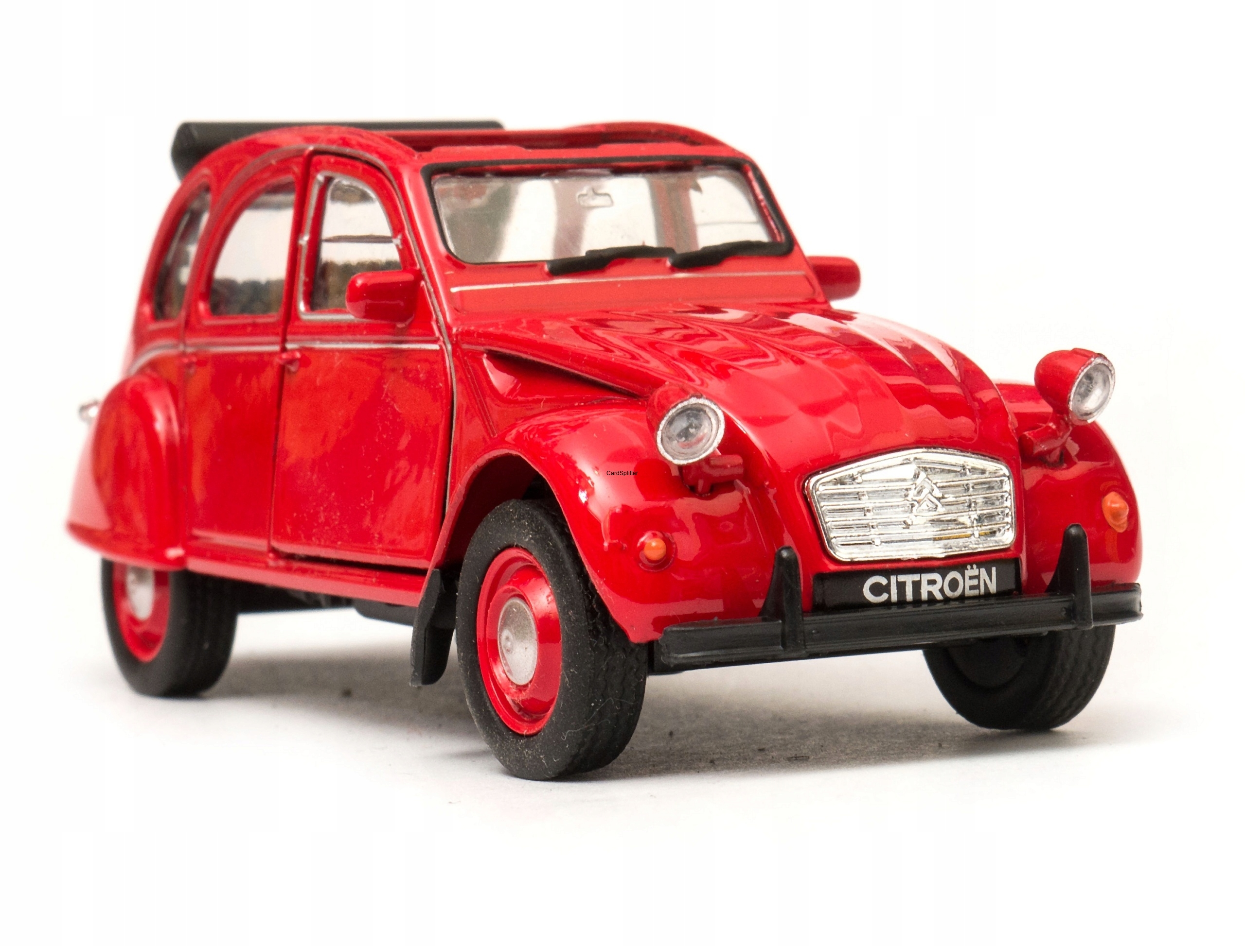 Fantastyczne autko Citroen 2CV spodoba się każdemu miłośnikowi pojazdów Welly. Citroen 2CV to pojazd wykonany z metalu z dodatkiem plastiku. Samochód ma otwierane drzwi, gumowe opony, wykończone wnętrze i metalową karoserię. Malowany specjalną farbą stosowaną w koncernach samochodowych. Wspaniały model kolekcjonerski może stać w pudełku za witryną albo być wspaniałą zabawką.