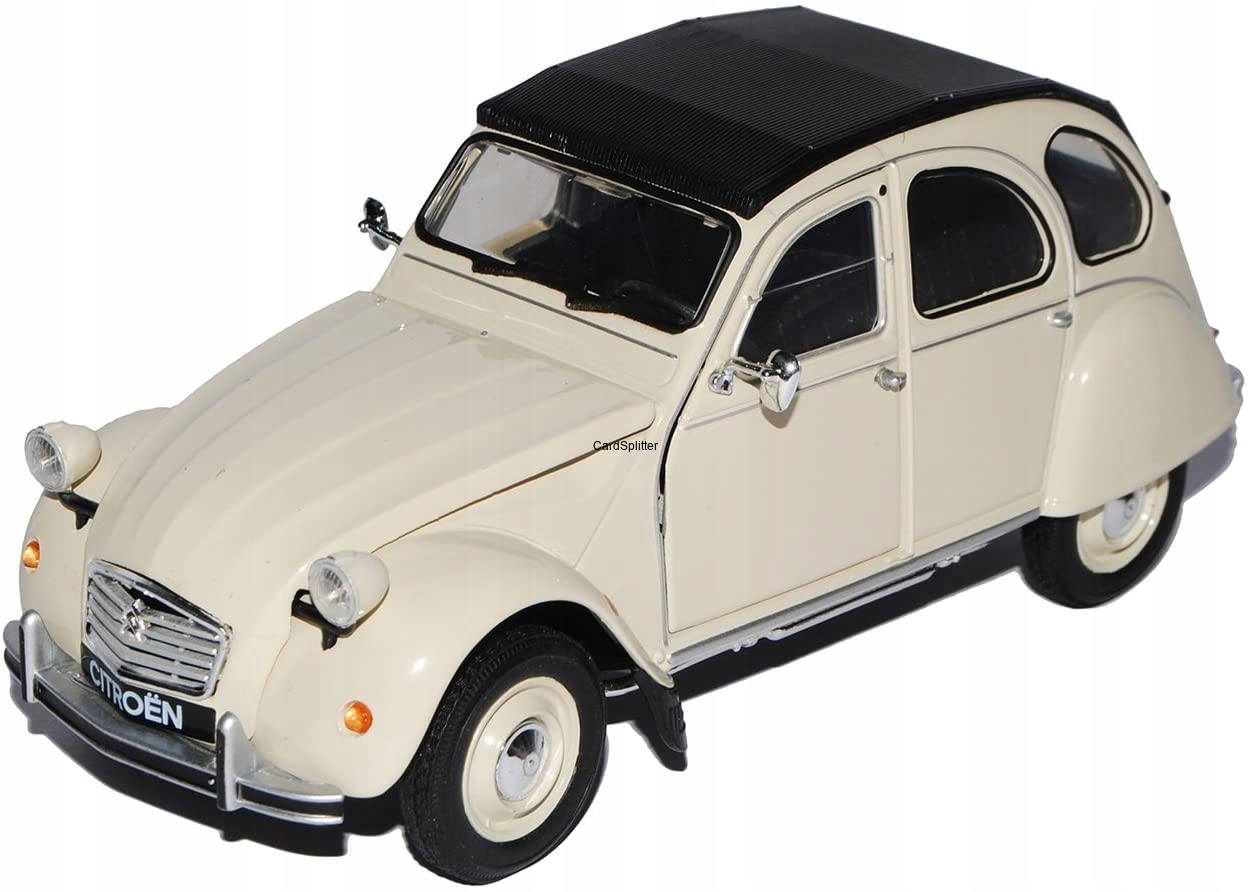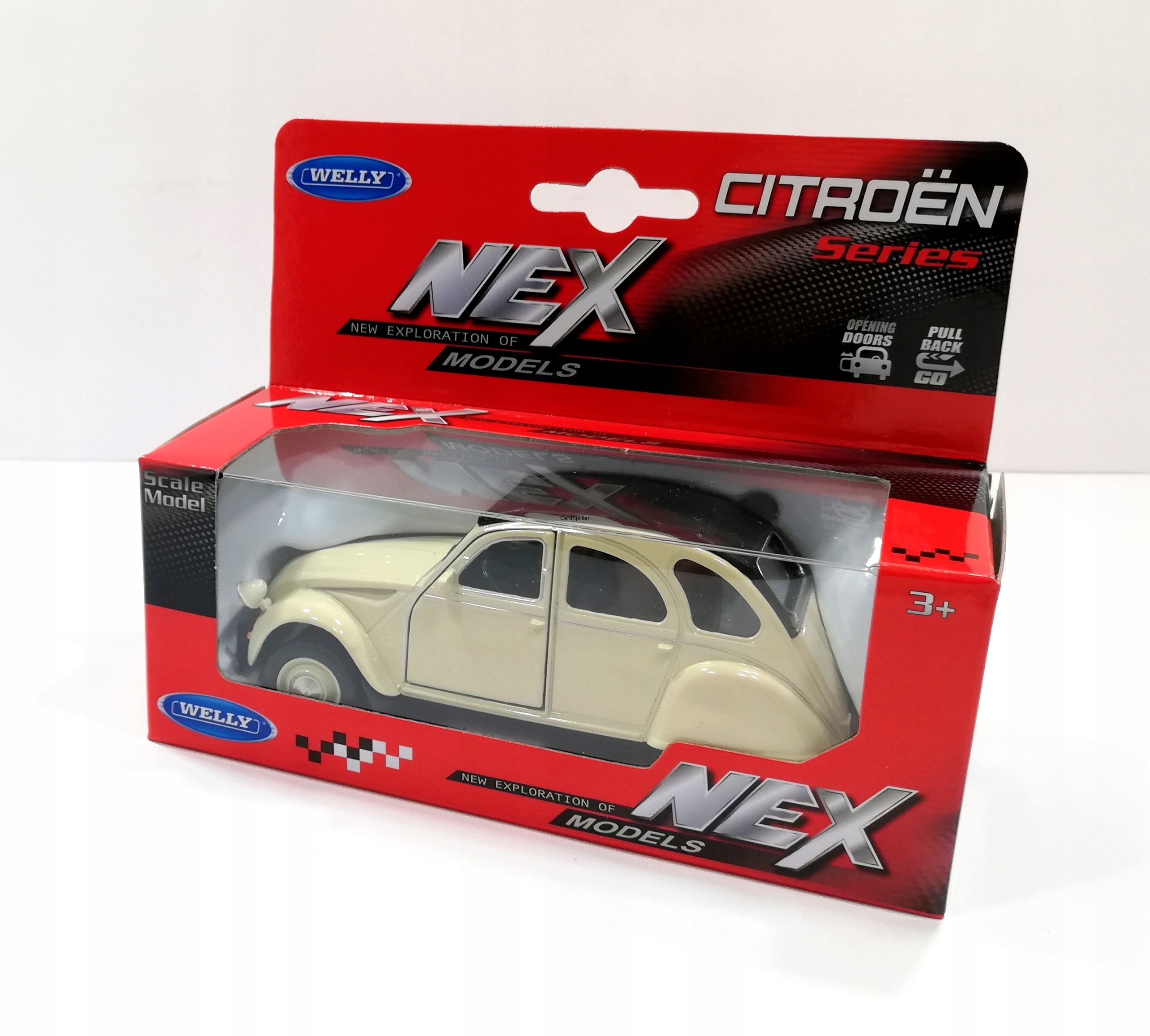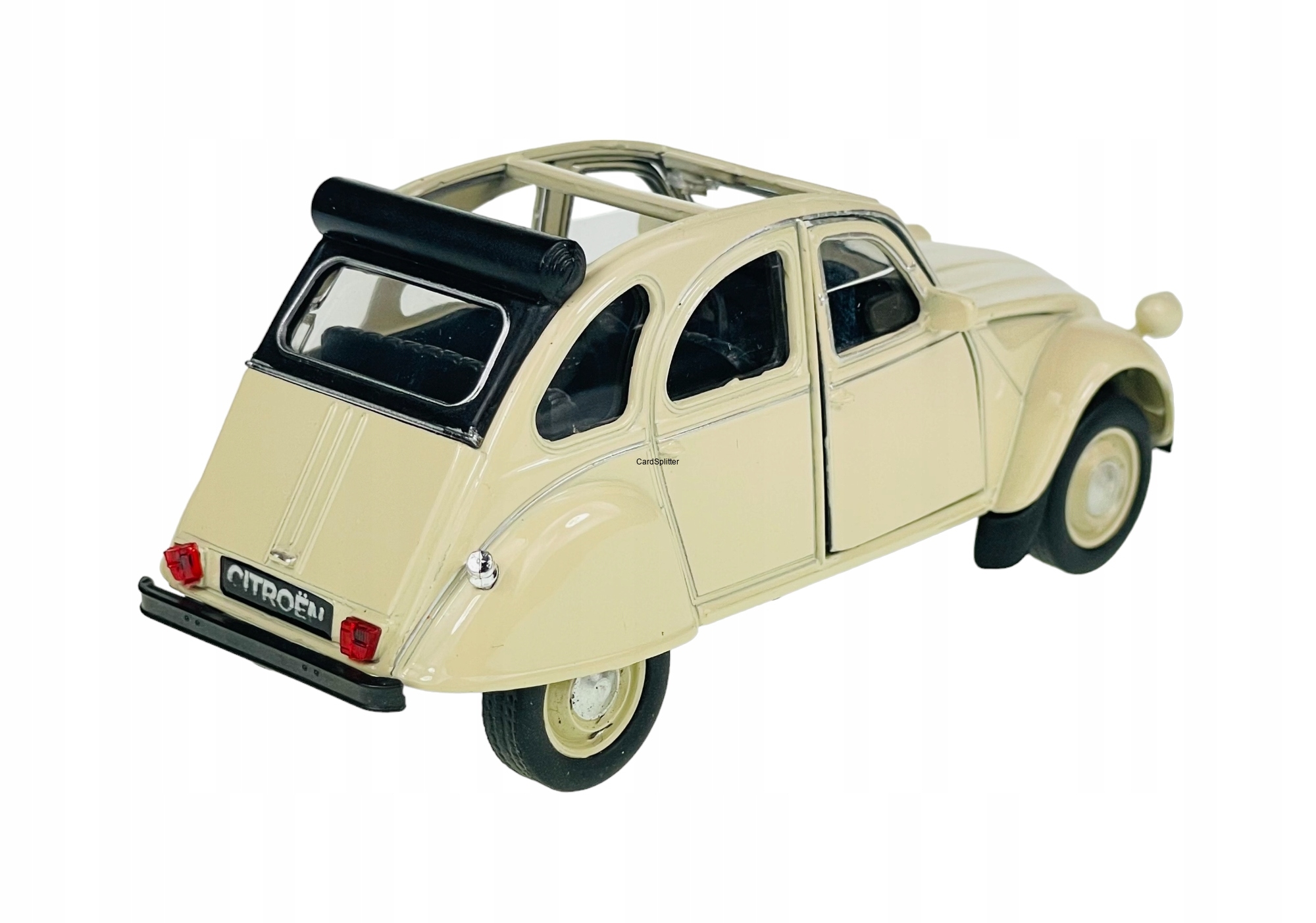 Fantastyczne autko Citroen 2CV spodoba się każdemu miłośnikowi pojazdów Welly. Citroen 2CV to pojazd wykonany z metalu z dodatkiem plastiku. Samochód ma otwierane drzwi, gumowe opony, wykończone wnętrze i metalową karoserię. Malowany specjalną farbą stosowaną w koncernach samochodowych. Wspaniały model kolekcjonerski może stać w pudełku za witryną albo być wspaniałą zabawką.