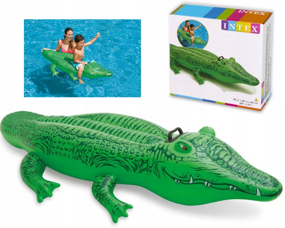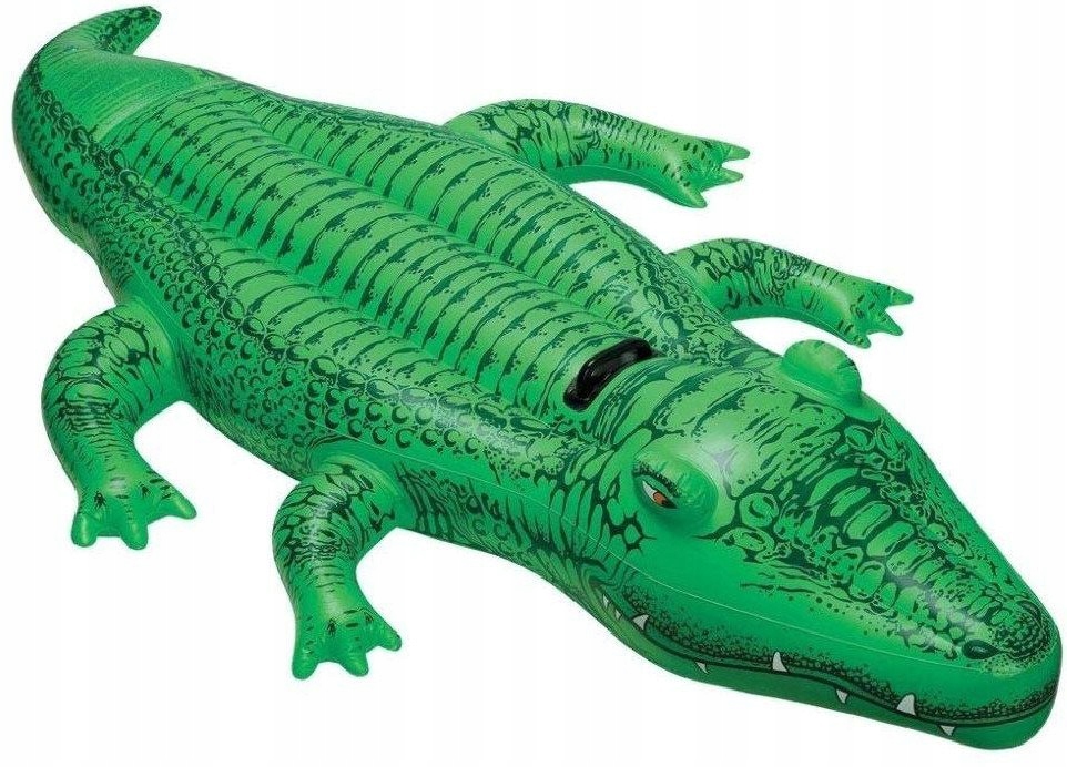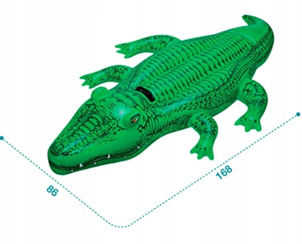 Dmuchany Duży Aligator Intex, to mniejsza wersja popularnej zabawki Aligatora idealna na letni wypad nad morze lub do basenu. Świetny dmuchany zwierzak mierzący 168 x 86 cm wygląda imponująco i równie imponująco wiele rozrywki ma sobą do zaoferowania. Wykonany z tworzywa PVC posiada poręczny, mocny uchwyt, więc można się nim bawić w wodzie nad morzem, nad jeziorem, na basenie, a nawet na lądzie. W razie uszkodzenia powierzchni dmuchanej, do zestawu załączamy łatkę naprawczą. Ostrzeżenie: Do używania jedynie w wodzie, na głębokości, na której dziecko wyczuwa dno pod nogami, oraz pod nadzorem osoby dorosłej.