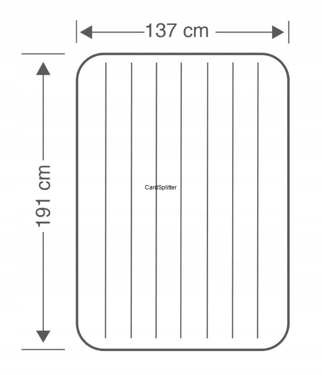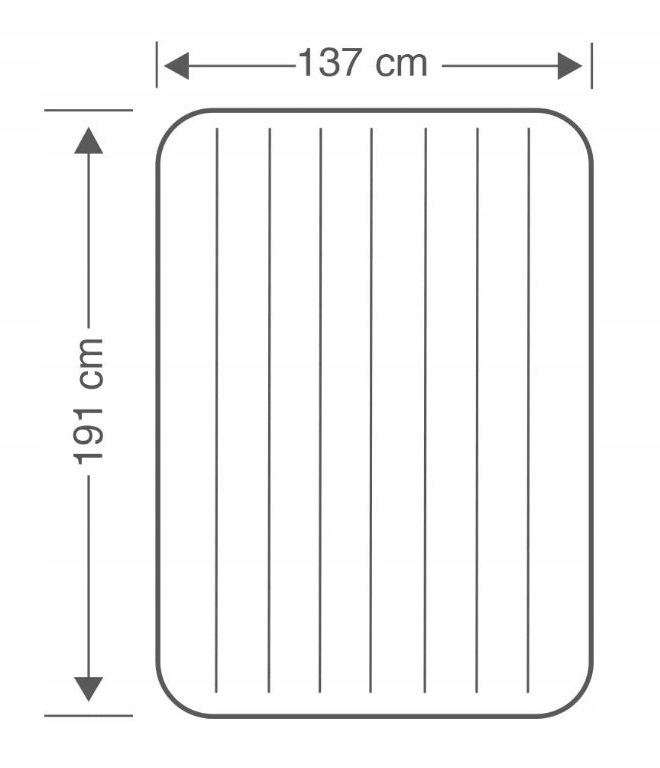 Materac o wymiarach 191 x 137 x 22 cm dostosowany jest dla dwóch osób. Firma Intex stosuje tylko i wyłącznie materiały winylowe o wzmocnionej konstrukcji. Materac dodatkowo został pokryty miękkim welurem, więc nie potrzeba nawet prześcieradła. To wysoki komfort za bardzo rozsądne pieniądze od światowego lidera w produkcji basenów, pontonów, materaców i innych akcesoriów pompowanych.