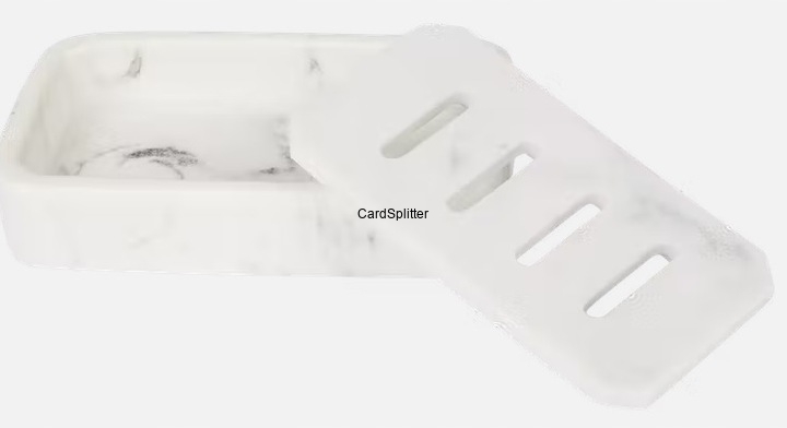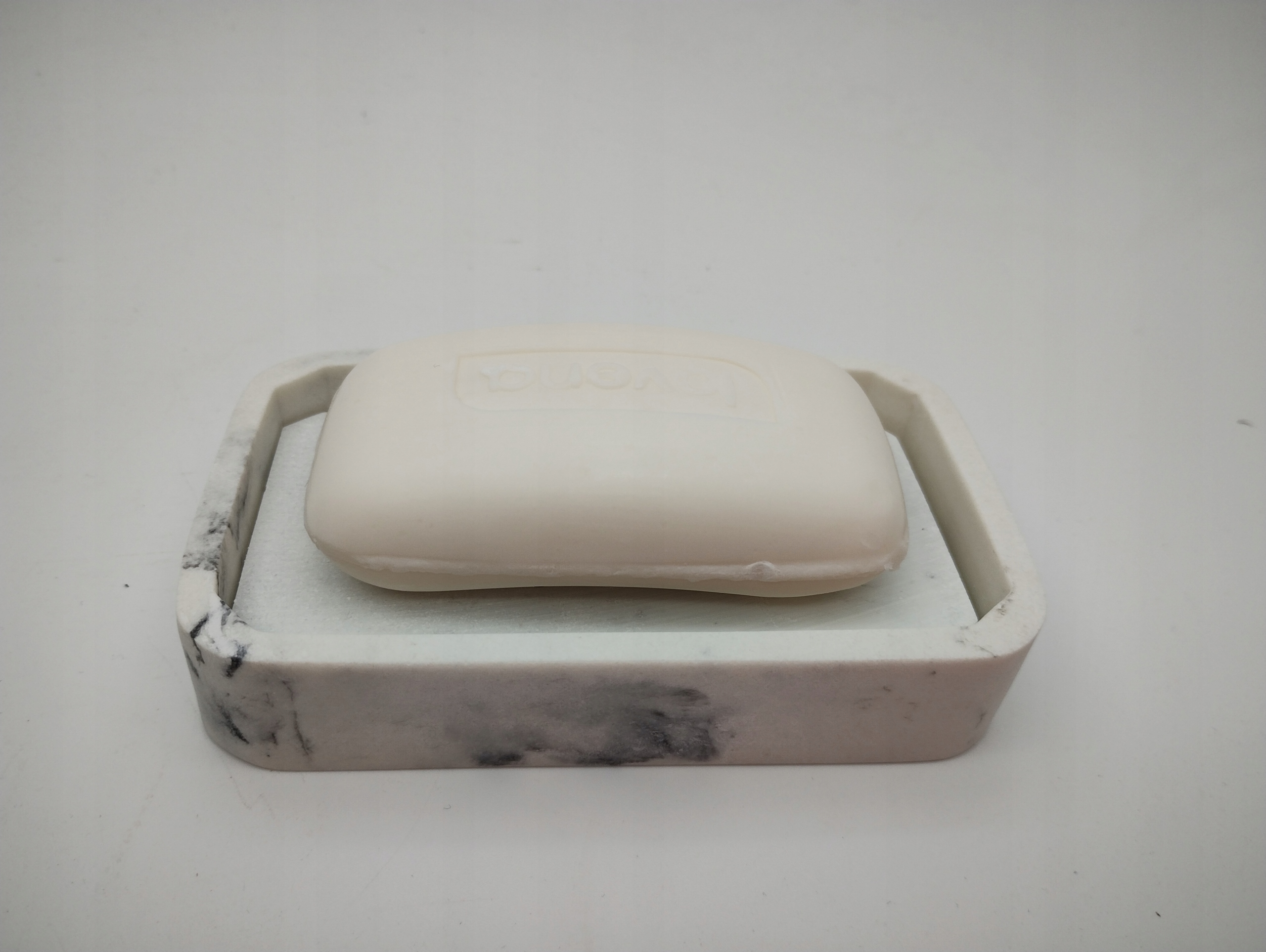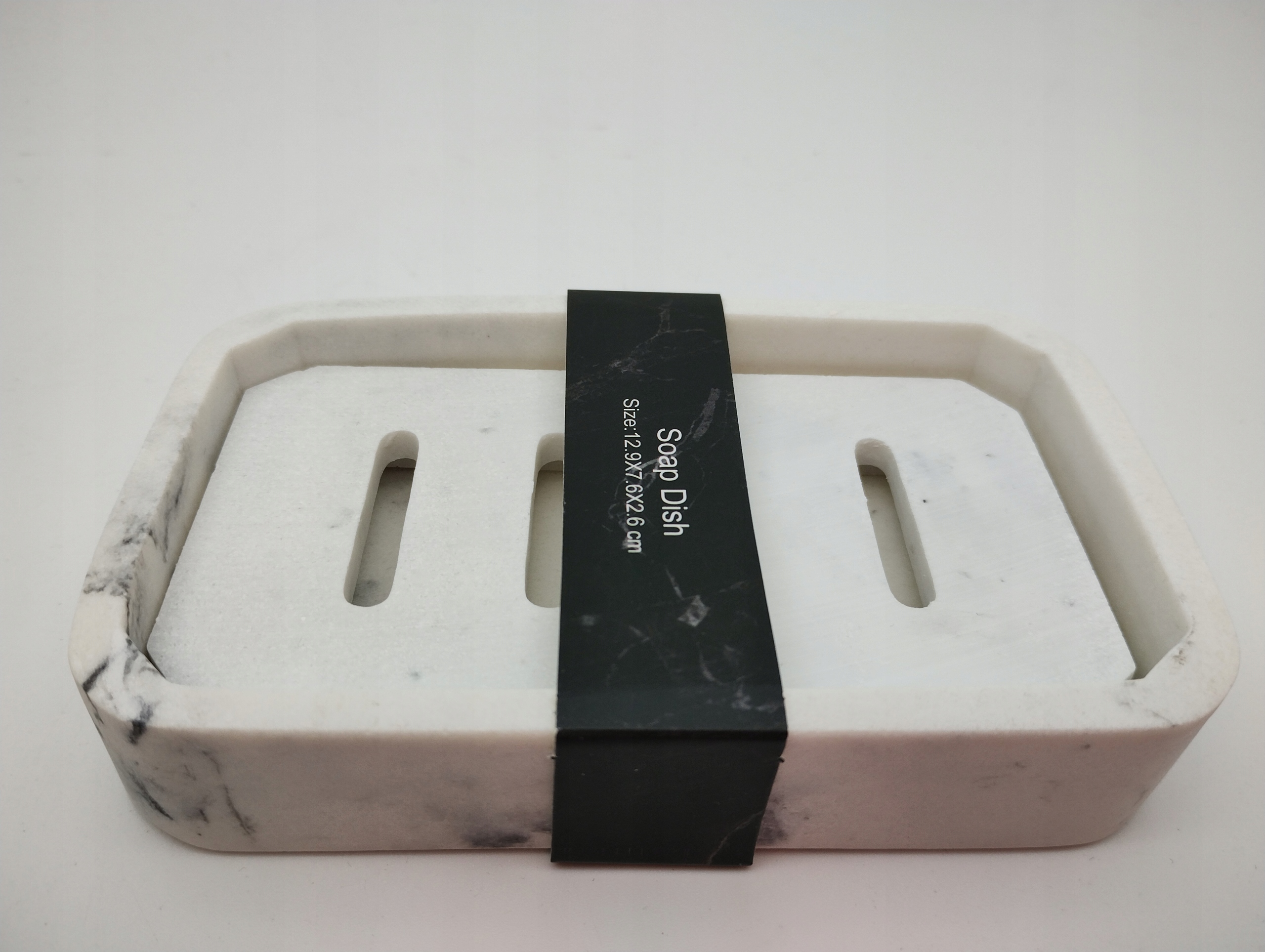✅ Materiał : tworzywo sztuczne przypominające wyglądem i wagą kamień, w kolorze białym z marmurowym wzorem.