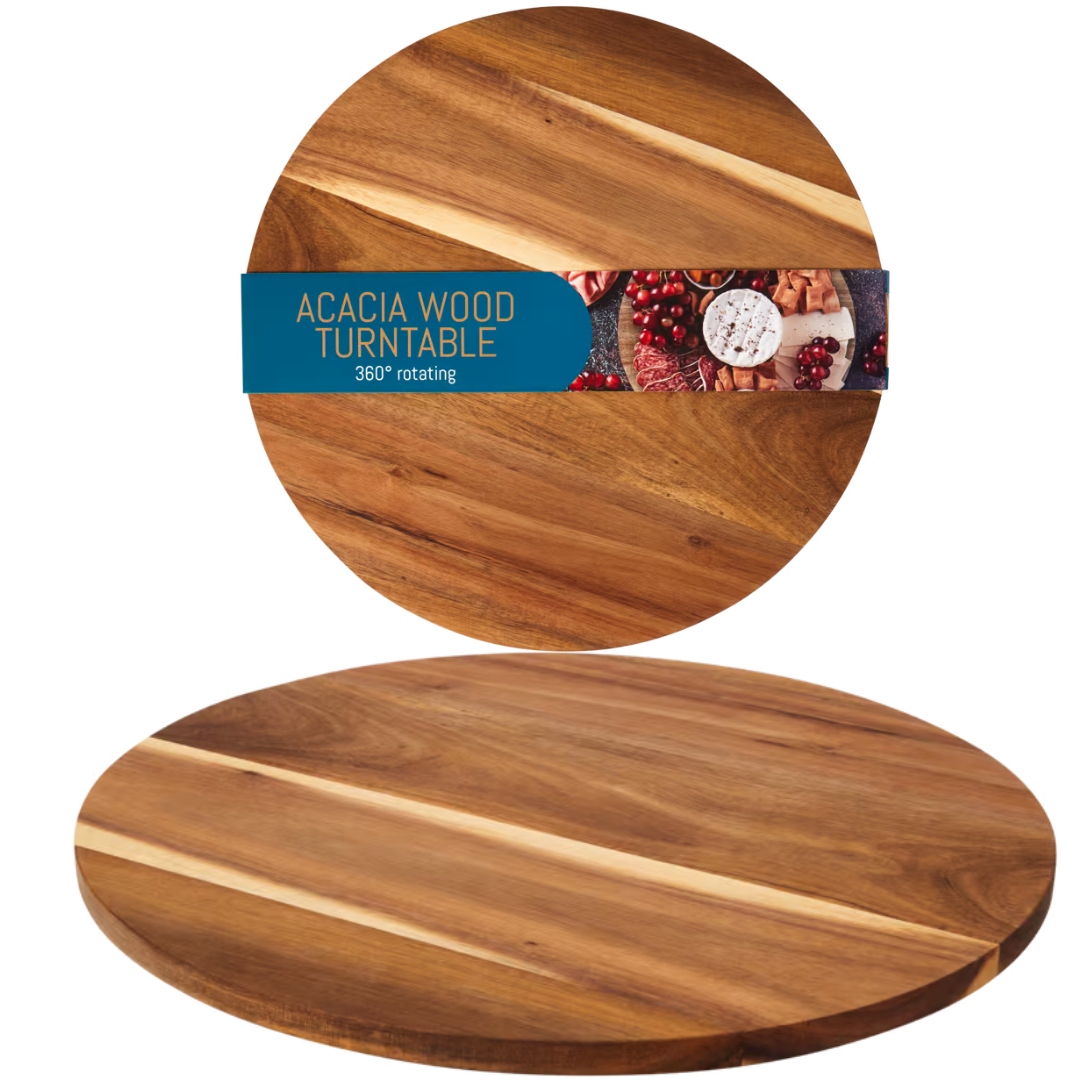 ✅Dodaj elegancji swoim posiłkom dzięki pięknej, obrotowej tacy wykonanej z drewna akacjowego.