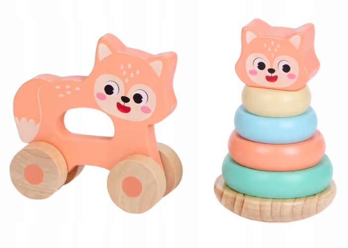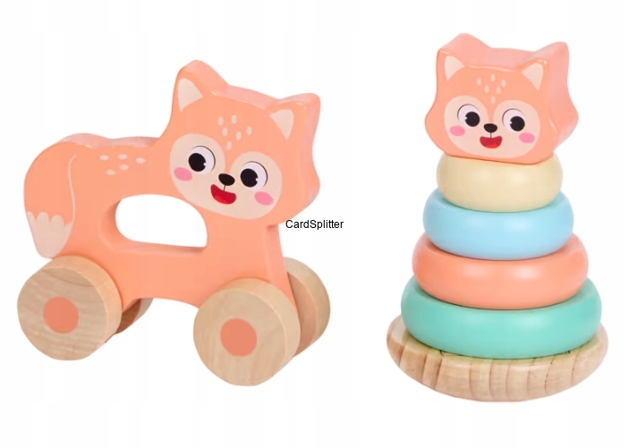 Podaruj swojemu dziecku drewnianą wieżę piramidę MINI MATTERS z wzorem kota i ciesz się wspólną zabawą, która rozwija i bawi jednocześnie!