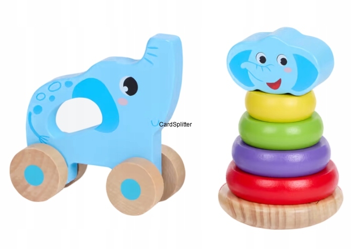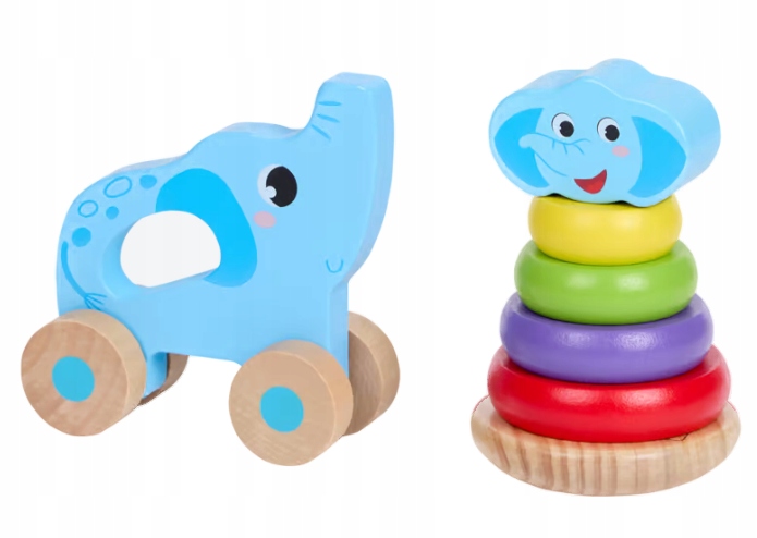 Podaruj swojemu dziecku drewnianą wieżę piramidę MINI MATTERS z wzorem słonika i ciesz się wspólną zabawą, która rozwija i bawi jednocześnie!