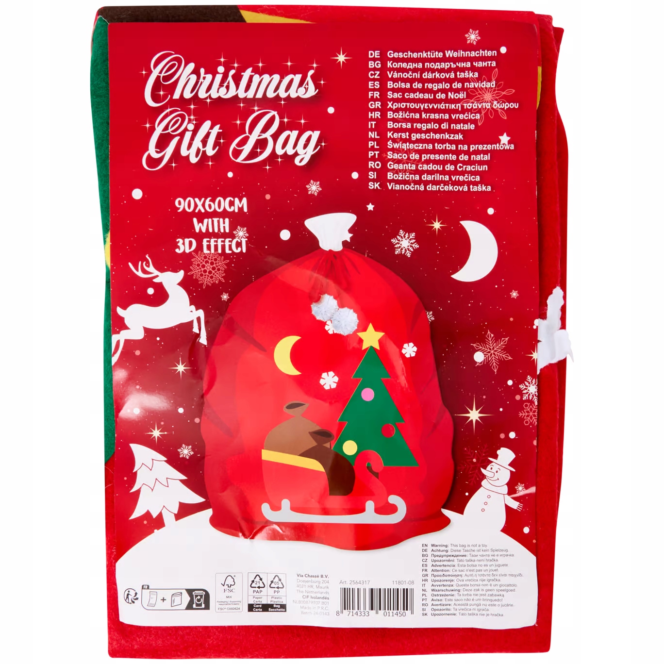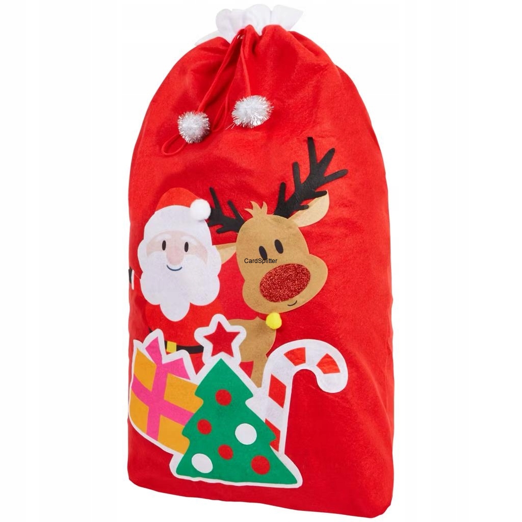 Ta świąteczna torba prezentowa to idealny i oryginalny pomysł, który świetnie wpasuje się pod choinką. Pakowanie prezentów nigdy nie było tak proste i przyjemne. Worek o świątecznym motywie wykonany został z filcu w tradycyjnych świątecznych kolorach. To opakowanie spodoba się każdemu!