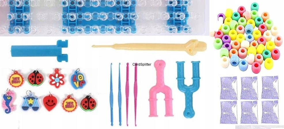 ✅W zestawie znajduje się prostokątny warsztat tkacki, na którym można wykonać z kolorowych gumek bransoletki, pierścionki czy naszyjniki.