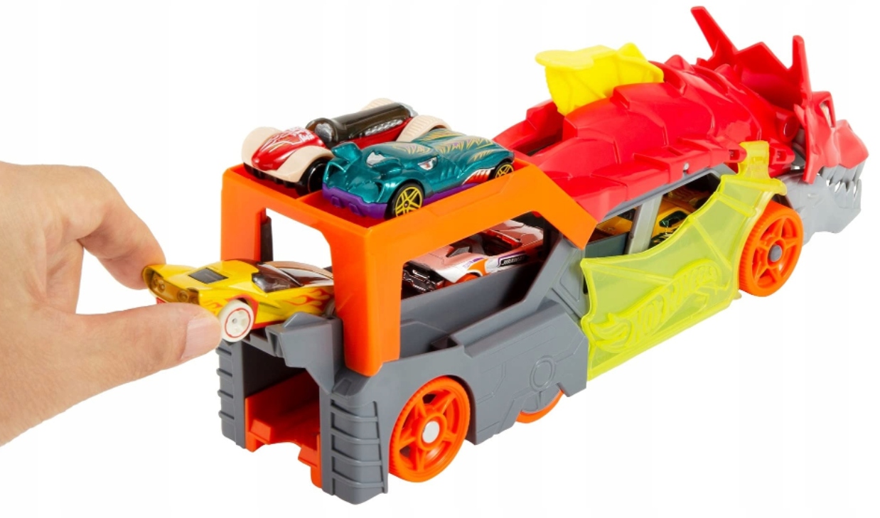 Zestaw do zabawy Hot Wheels Smok Transporter- Wyrzutnia to super ciężarówka do przewożenia samochodzików.