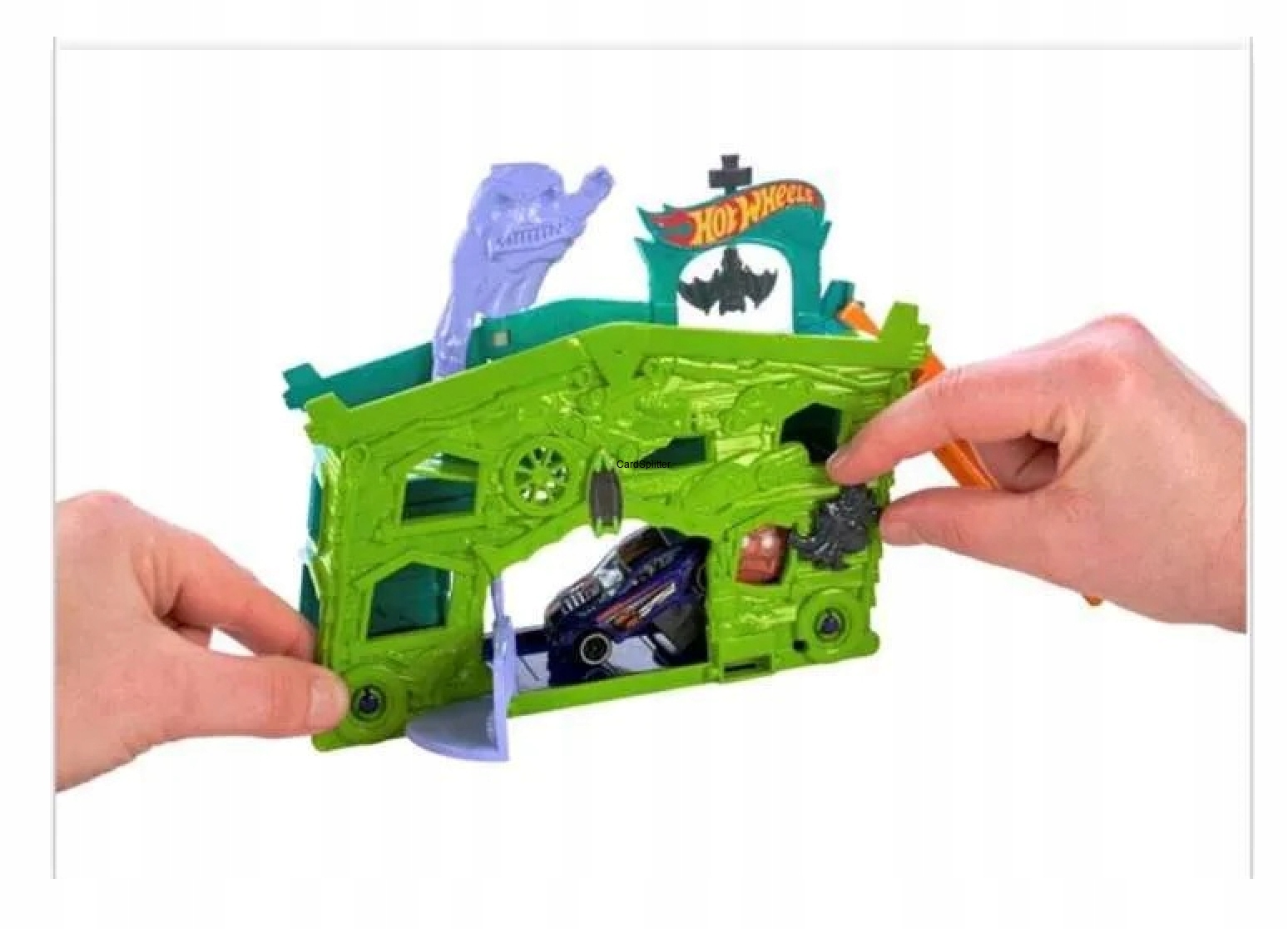 Hot Wheels obejmuje zestawy, które po rozłożeniu tworzą odjazdową restaurację, myjnię samochodową, warsztat lub nawet nawiedzony dom!
