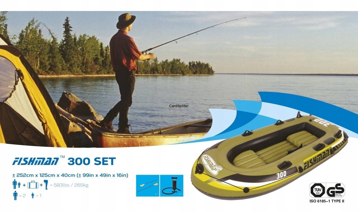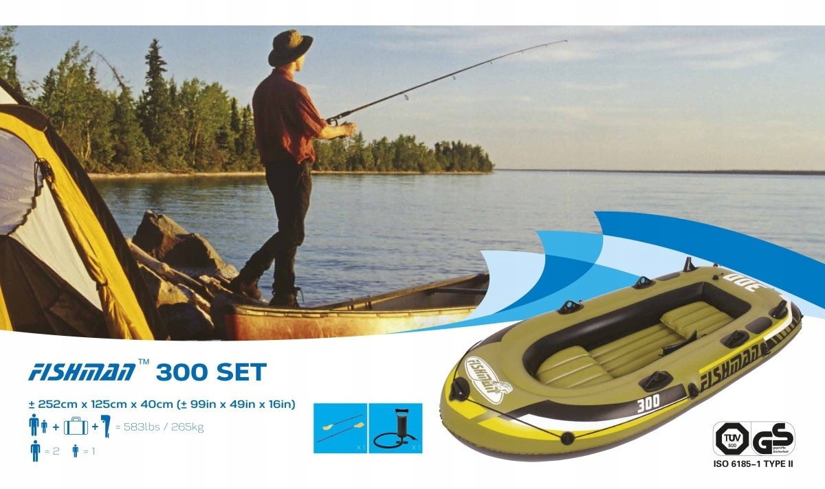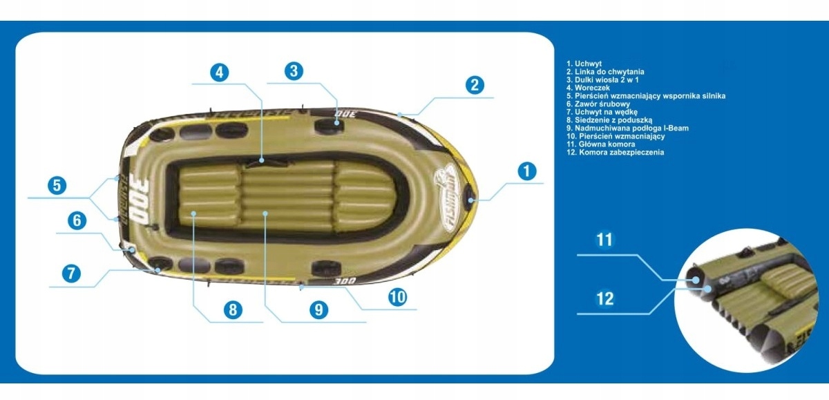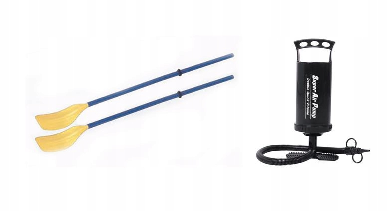 Dodatkowo dołączona pompka oraz dwa wiosła wykonane z plastiku (długość wiosła 124 cm)