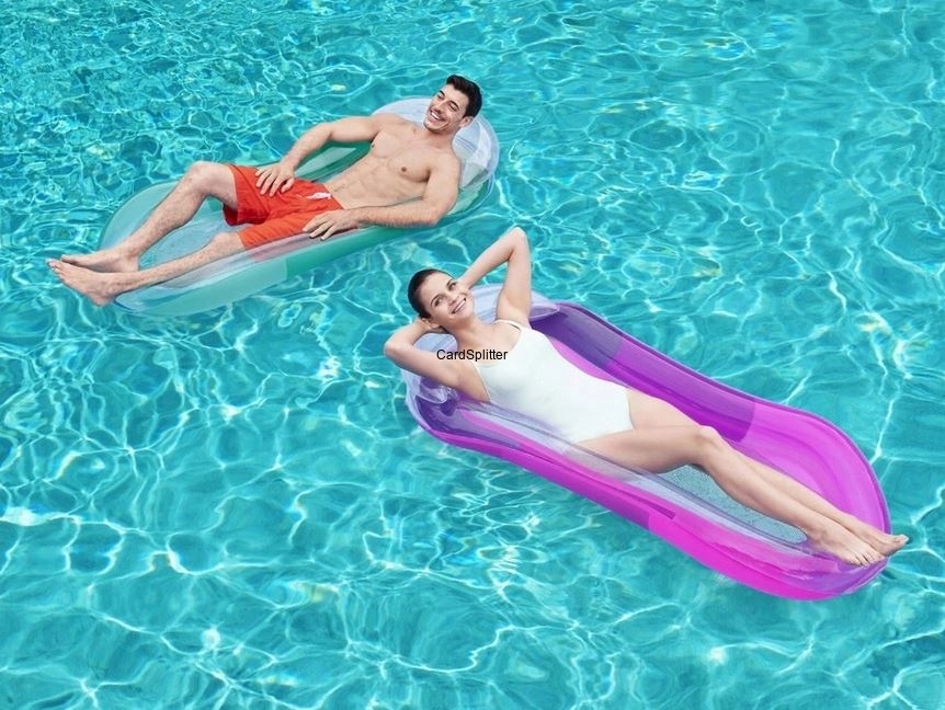 Ten wygodny materac powietrzny Aqua Lounge firmy Bestway z bardzo dużym półokrągłym zagłówkiem zapewnia czystą przyjemność leżenia dzięki elastycznej siatkowej podłodze, która daje uczucie ślizgania się bezpośrednio po wodzie.