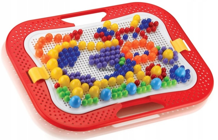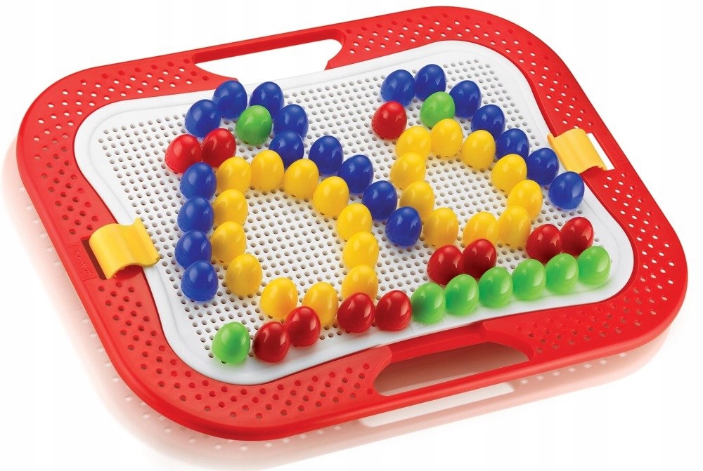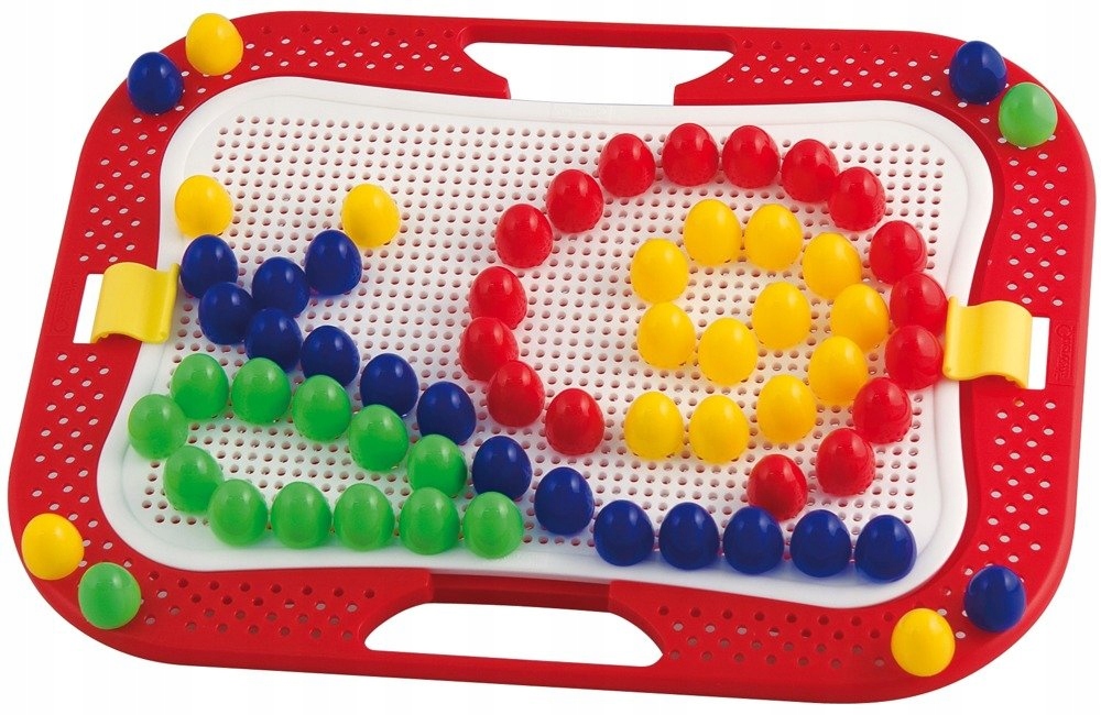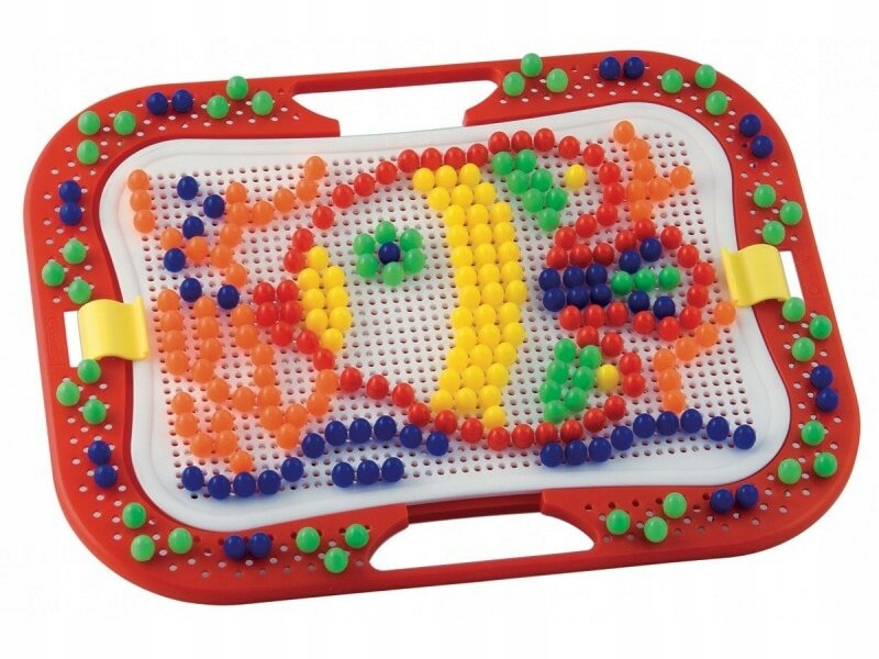 Tworzenie mozaiki poprzez wstawianie kołeczków w perforowaną tablicę zgodnie z proponowanym wzorem bądź własną wyobraźnią jest wspaniałą i twórczą zabawą.