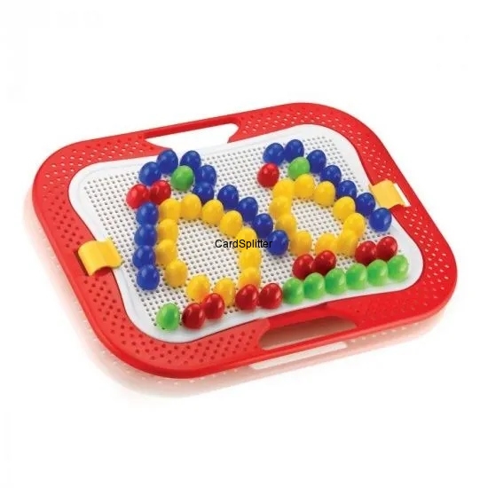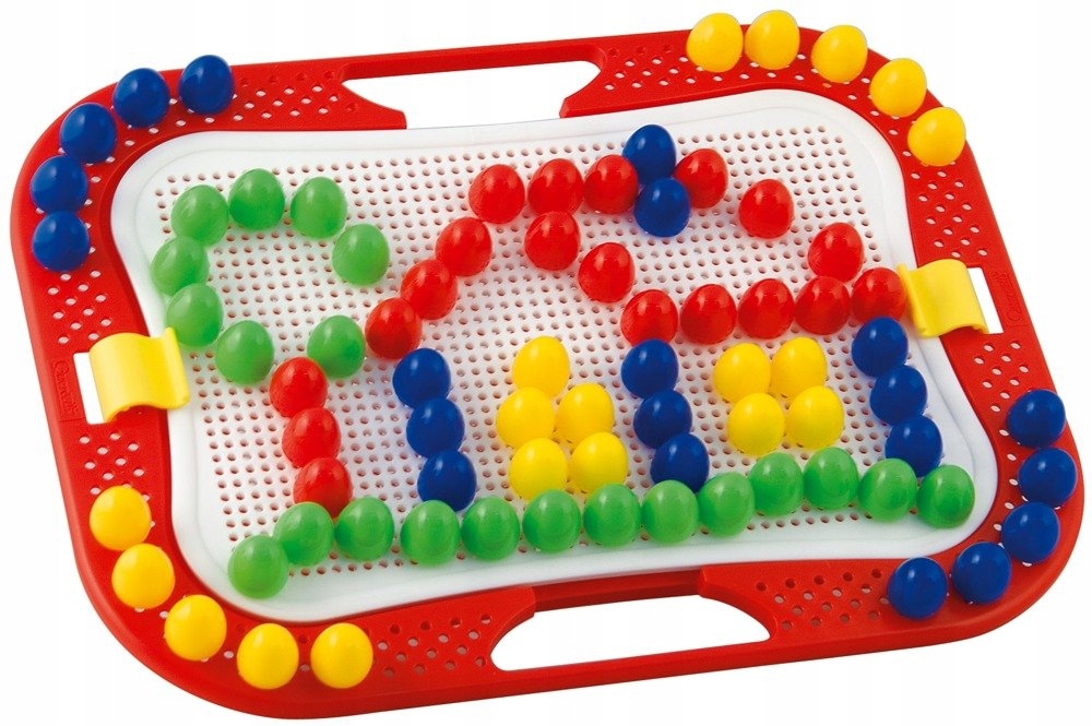 Zestaw składa się z 100 kołeczków o różnej średnicy, 2 tablic z możliwością połączenia w jedną dużą tablicę.