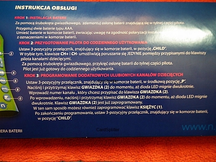 Każdy kanał posiada swój przycisk na pilocie opatrzony logotypem stacji. W ten sposób dziecko otrzymuje wygodne narzędzie wprowadzające porządek do jego telewizyjnego świata bajek, kreskówek i zabaw edukacyjnych. Super Pilot dla dzieci został zaprogramowany w sposób umożliwiający poruszanie się tylko i wyłącznie pomiędzy kanałami pakietu dziecięcego telewizji nowej generacji N.