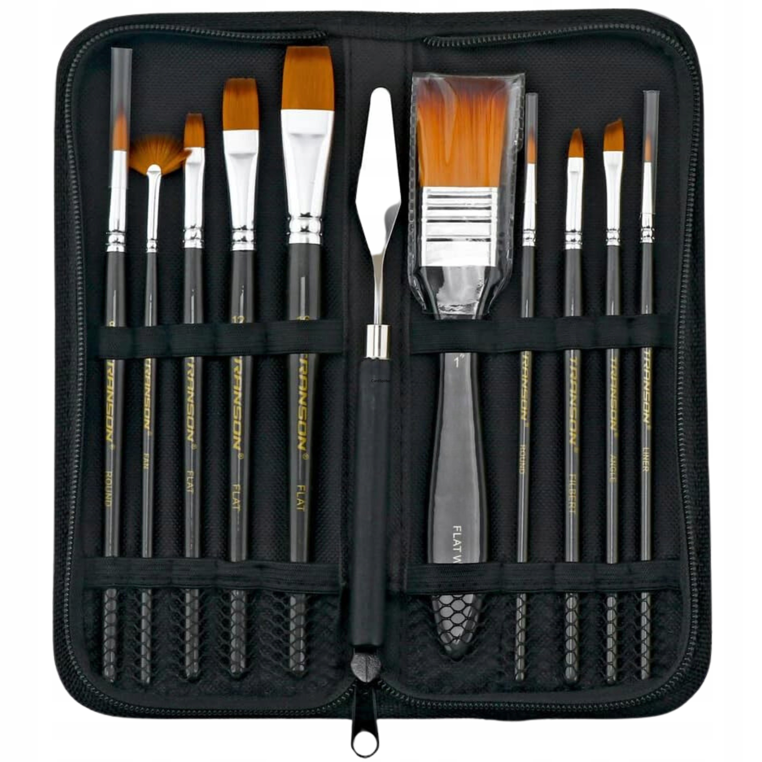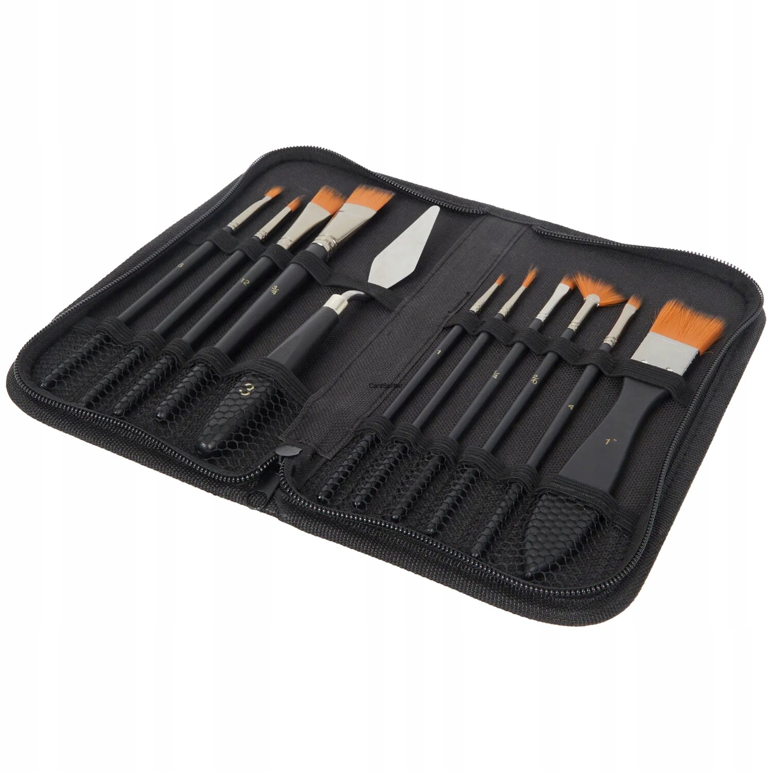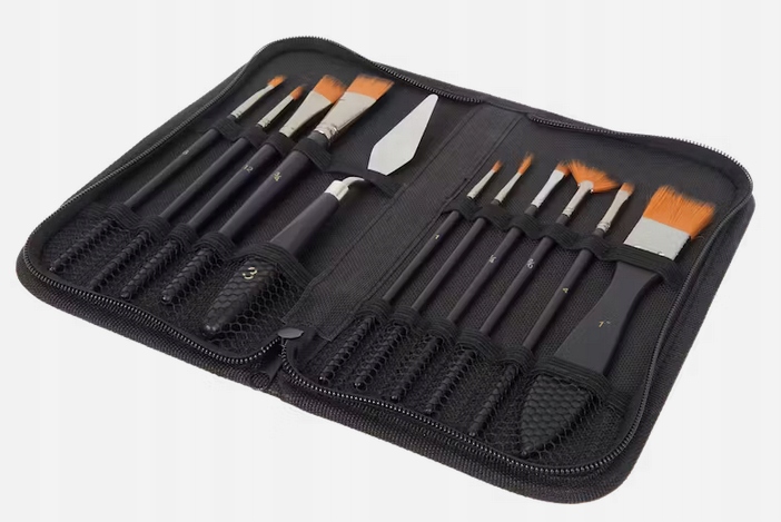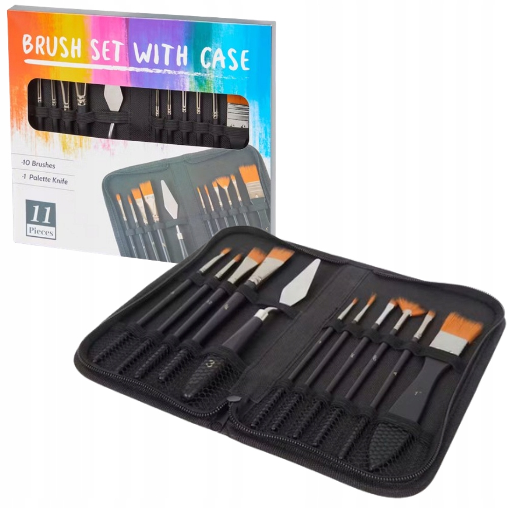Odkryj niezrównane możliwości artystyczne, które są dostępne dzięki zestawowi z 10 pędzlami oraz szpachelką w eleganckim etui! Zestaw został stworzonych z myślą o pasjonatach sztuki.
