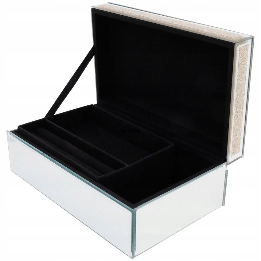 Pięknie zaprojektowane pudełka to prawdziwa ozdoba w naszych wnętrzach. Tym bardziej jeśli potrafią skrywać w środku biżuterię. Jest to doskonała propozycja na prezent.Tafla lustra dodaje formie lekkości i elegancji, a także stwarza nowe możliwości funkcjonalne. Element w postaci czarnego wnętrza pięknie dopełnia białe zewnętrzne drewno.