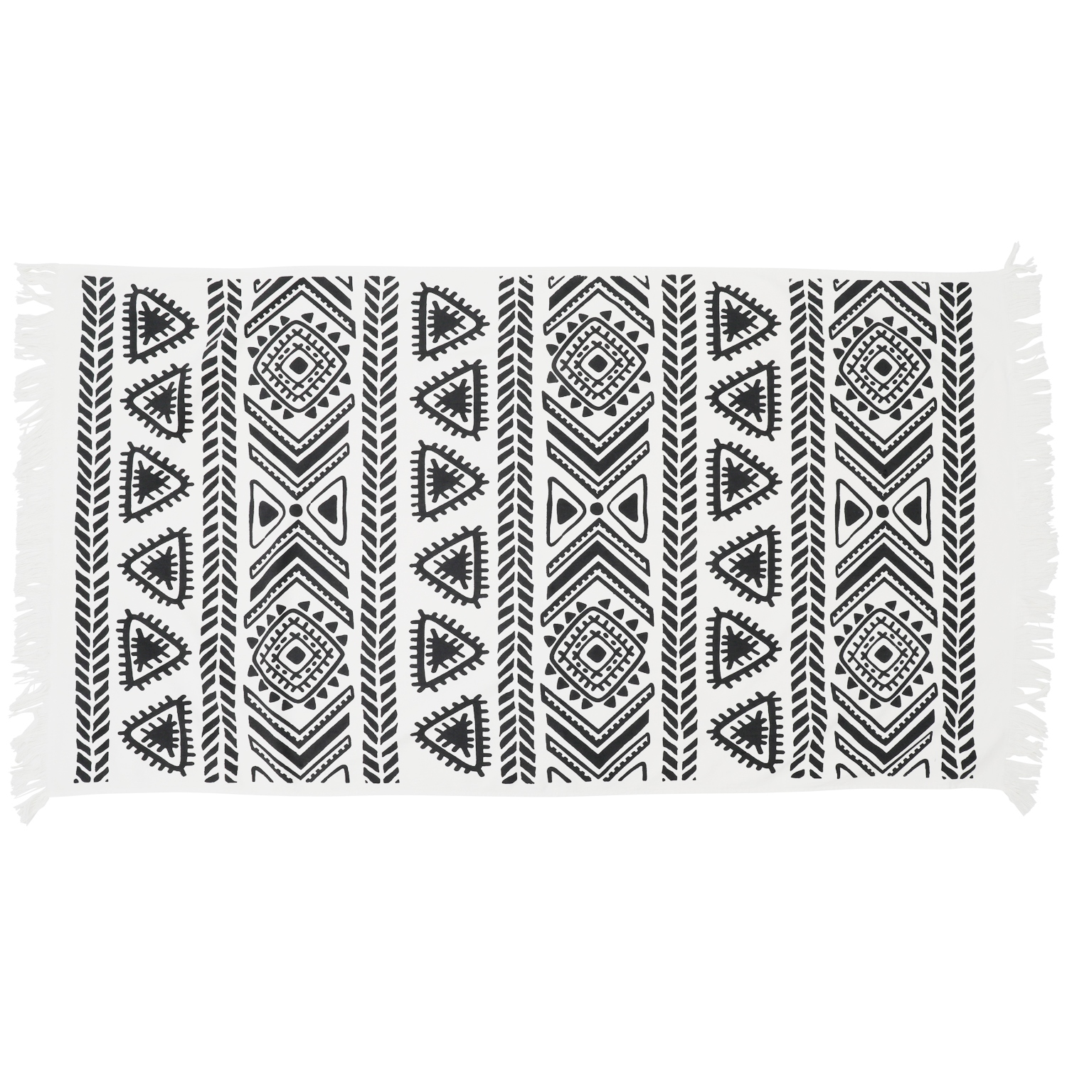 Kolor złamanej bieli, nadruk boho, wykończony frędzlami
