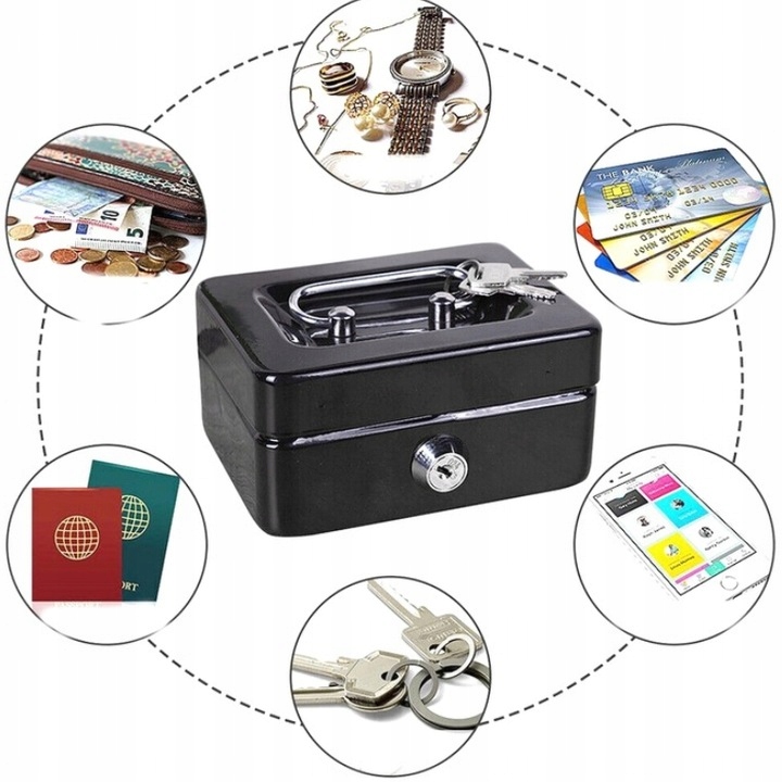 Nadaje się do przechowywania różnych przedmiotów, takich jak biżuteria, klucze, karty kredytowe czy dokumenty, zwiększając poczucie bezpieczeństwa.