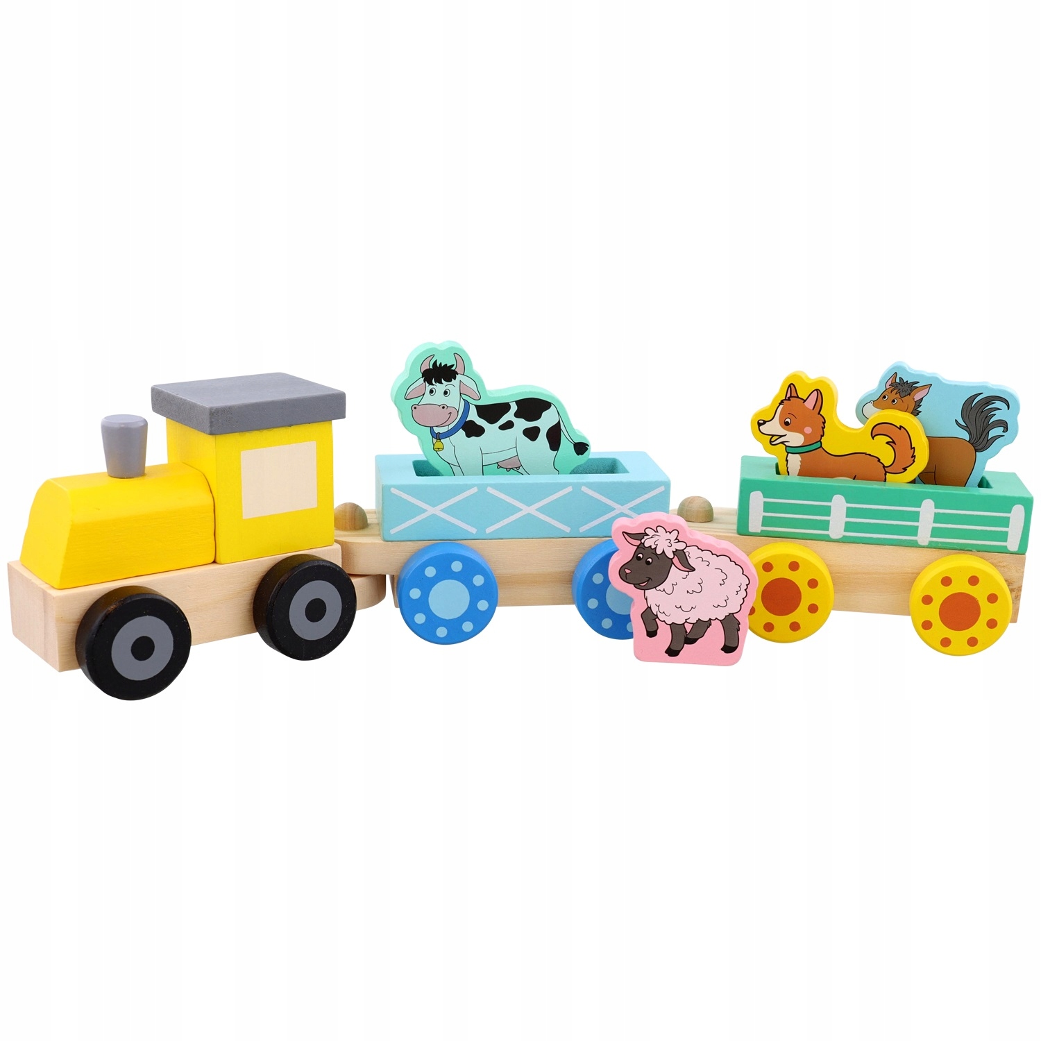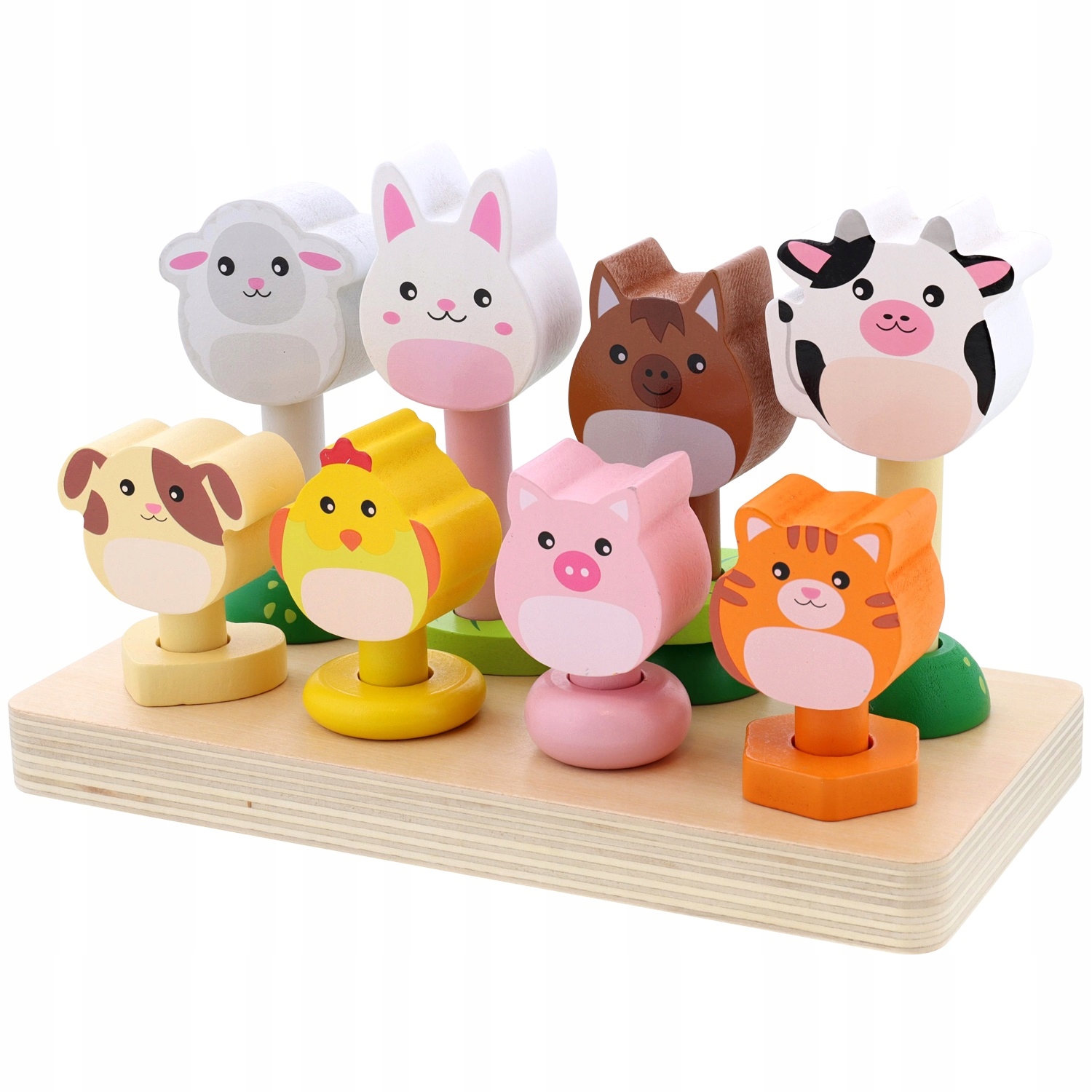 Układanka zawiera 8 słupków na którym dziecko układa zwierzątka