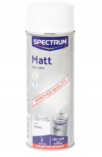 Farba w sprayu o pojemności 400 ml w kolorze białym o matowym wykończeniu. Jest przeznaczona do malowania elementów różnego pochodzenia. Farba na bazie wody, do użycia wewnątrz i na zewnątrz. Nadaje się do malowania metalu, aluminium, drewna, kamienia, szkła oraz tworzyw sztucznych. Zapewnia równomierne krycie i trwałą powłokę, odporną na ścieranie i plamy. Czas schnięcia wynosi zaledwie 1 godzinę. Wystarcza na pomalowanie elementów o powierzchni od 1,75 do 2,25 m2.