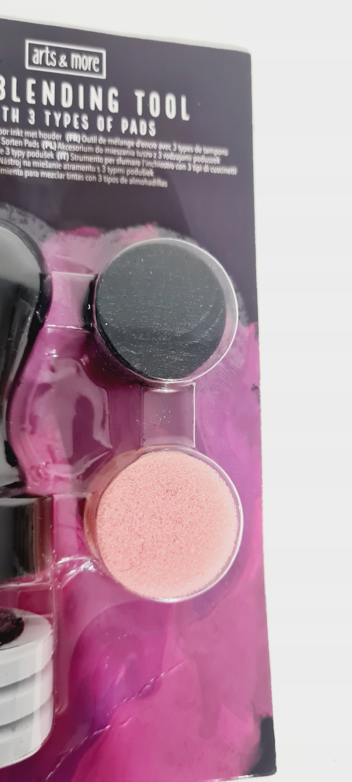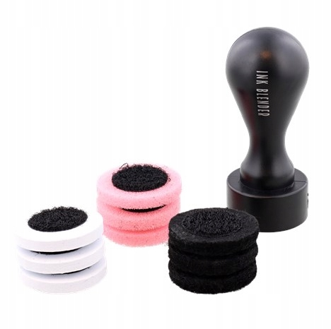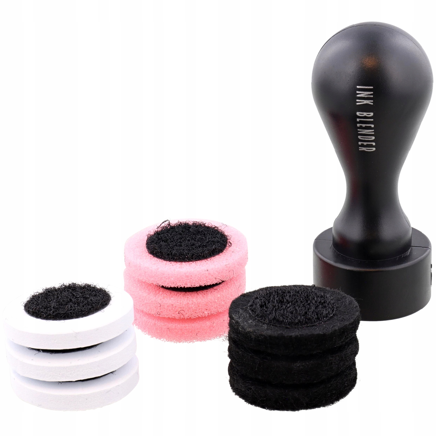 Narzędzie do nakładania tuszu z wymiennymi gąbkami w zestawie.