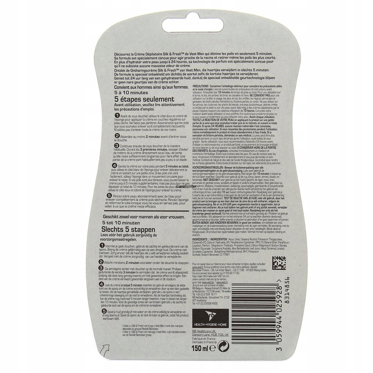 Zachowaj opakowanie zewnętrzne ponieważ zawiera wszystkie środki ostrożności.Przeczytaj i stosuj zgodnie ze środkami ostrożności i sposobem użycia. Nie przekraczaj 6 minut całkowitego czasu aplikacji. Produkt odpowiedni do użycia na plecach, klatce piersiowej, rękach, nogach, pachach oraz w okolicy pachwin/bikini. Produkt nie jest odpowiedni do użycia na głowie, twarzy, okolicach oczu, nosa, uszu, okolicach intymnych, sutków i innych części ciała. Nie stosuj na skórę z żylakami, bliznami, znamionami, wypryskami, uszkodzoną, podrażnioną lub poparzoną słońcem, ani na skórę, w obrębie której w przeszłości wystąpiła niepożądana reakcja na krem. Między kolejnymi depilacjami zawsze odczekaj 72 godziny. Jeśli zażywasz leki, które mogą oddziaływać na skórę lub jeśli cierpisz na jakiekolwiek schorzenie skóry przed użyciem skonsultuj się z lekarzem. Przed każdym użyciem SPRAWDŹ REAKCJĘ SWOJEJ SKÓRY. Użyj produkt na mały obszar skóry, który zamierzasz depilować, stosując się do instrukcji użycia. Jeśli po 24 godzinach nie wystąpi reakcja niepożądana możesz zacząć stosować produkt. Jeśli podczas użycia wystąpi uczucie pieczenia lub swędzenia natychmiast usuń krem i dokładnie spłucz zimną wodą. Jeśli uczucie pieczenia nie ustąpi skontaktuj się z lekarzem. Przez krótki czas po użyciu produktu skóra może być bardziej wrażliwa, dlatego unikaj drapania. Po zastosowaniu produktu zaleca się odczekać 24 godziny przed pływaniem, opalaniem oraz przed użyciem antyperspirantu, produktów perfumowanych i produktów do opalania. Chronić przed dziećmi. W razie połknięcia natychmiast skonsultuj się z lekarzem i pokaż mu opakowanie produktu. Unikaj kontaktu z oczami. W przypadku dostania się preparatu do oczu natychmiast opłucz je obficie wodą i skontaktuj się z lekarzem. Zawiera alkalia i tioglikolany. Produkt może spowodować, że powierzchnie staną się śliskie. Unikaj przypadkowego kontaktu produktu z dywanami, ubraniami oraz posadzkami.