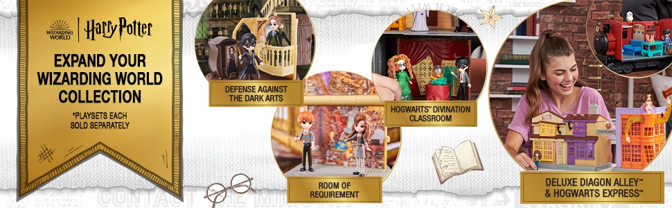 Podłącz zestaw do zamku Hogwart Magical Minis (sprzedawany osobno) i odgrywaj niekończące się, magiczne przygody w Klasie eliksirów, Klasie zaklęć czy na Zajęciach z opieki nad magicznymi stworzeniami (sprzedawane osobno). Zbierz i połącz wszystkie figurki oraz wszystkie zestawy, aby stworzyć swój własny świat czarodziejów (wszystkie sprzedawane osobno)! Zeskanuj kod QR na pudełku, aby wyświetlić plakat kolekcjonerski i powiększyć swoją kolekcję Magical Minis. Zabawki Magical Minis ze świata Harry'ego Pottera to idealne prezenty dla dzieci i fanów Harry'ego Pottera. Doświadcz magii świata Harry'ego Pottera dzięki zestawowi Pokój Życzeń Wizarding World Magical Minis!