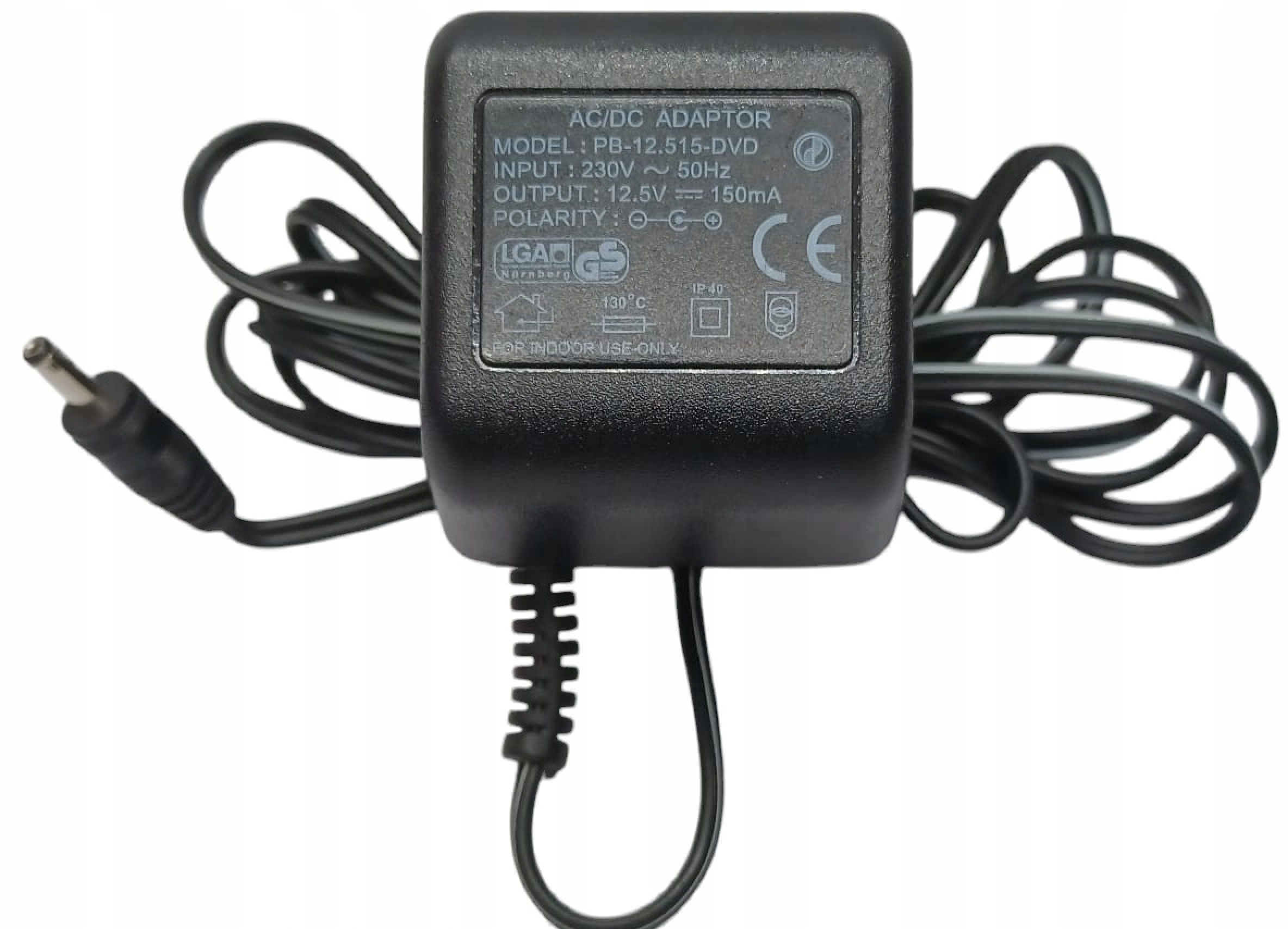 Zasilacz impulsowy 12,5V 150mA przeznaczony do użytku domowego. Idealny do wszelkiego rodzaju urządzeń elektronicznych wymagających napięcia 12,5V z obciążeniem maksymalnym 150mA oraz pasującym gniazdem.