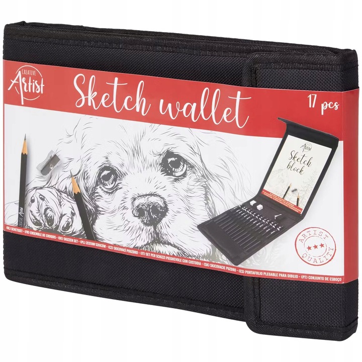 Zestaw do szkicowania DRAWING SET marki Creative Artists składa się z 17 części. Całość zamknięto w praktycznym i bezpiecznym, etui o wymiarach 24,5 x 18,5 x 3 cm.